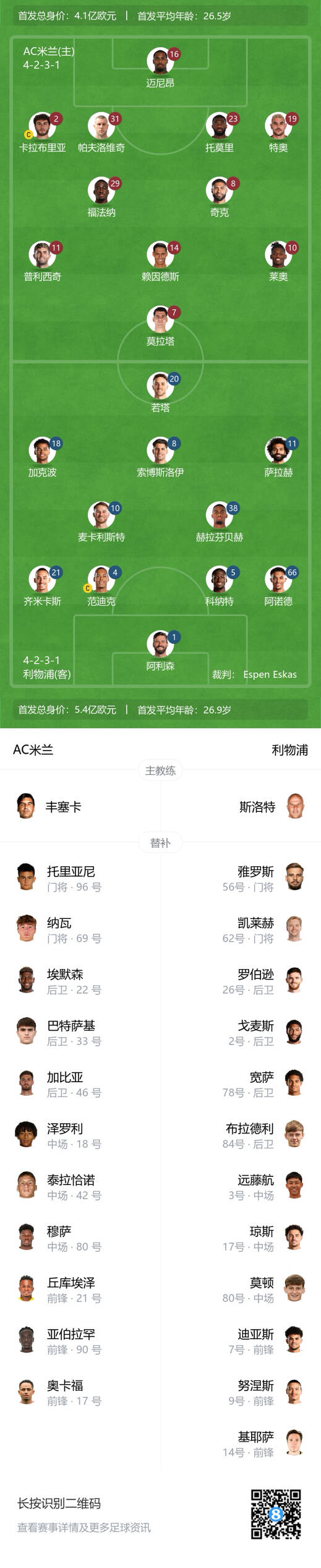 - 切费林和格拉维纳现场观战米兰对阵利物浦,并获赠米兰球衣
