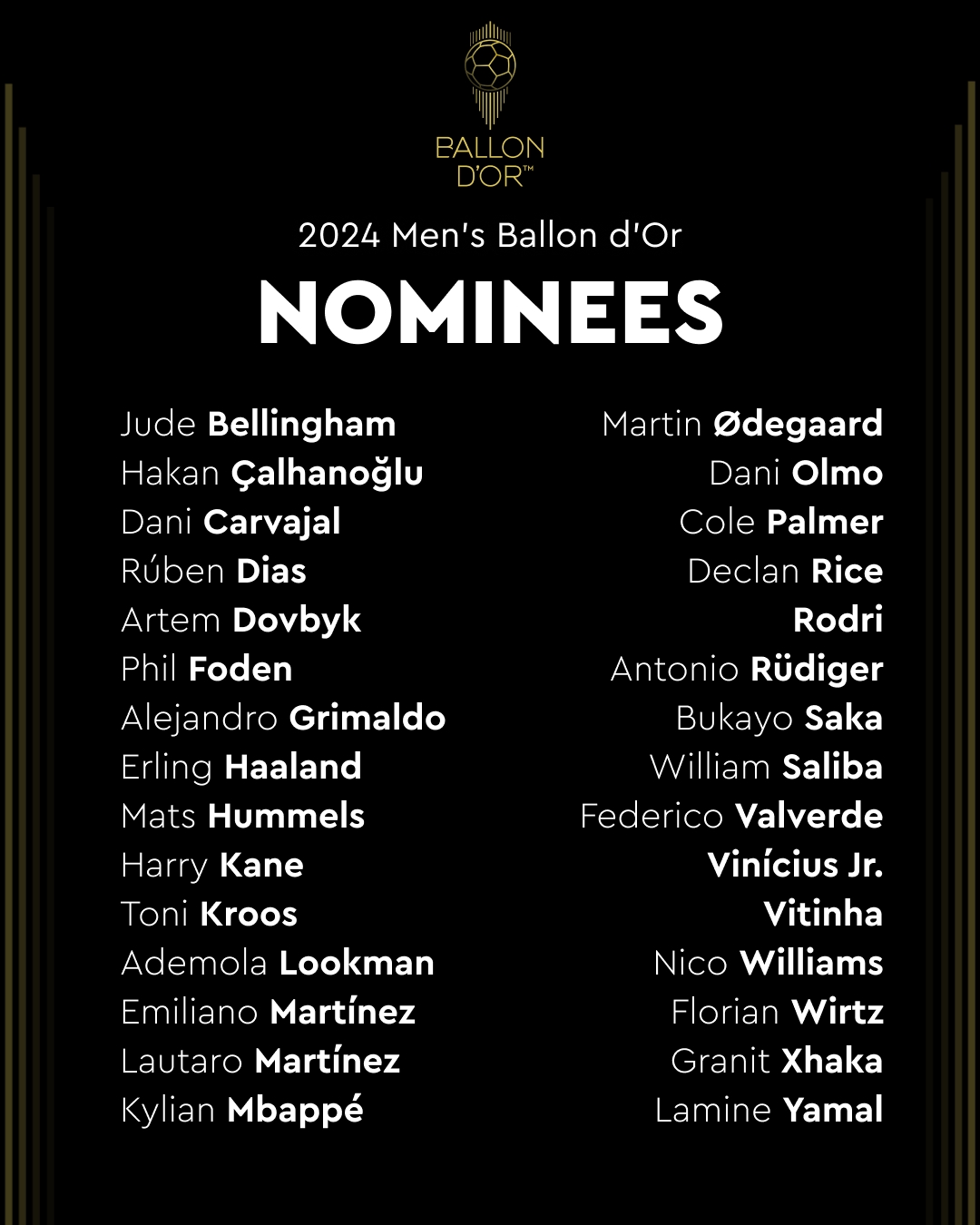 相关新闻:金球奖30人候选名单:维尼修斯、罗德里、亚马尔在列,梅罗均无缘