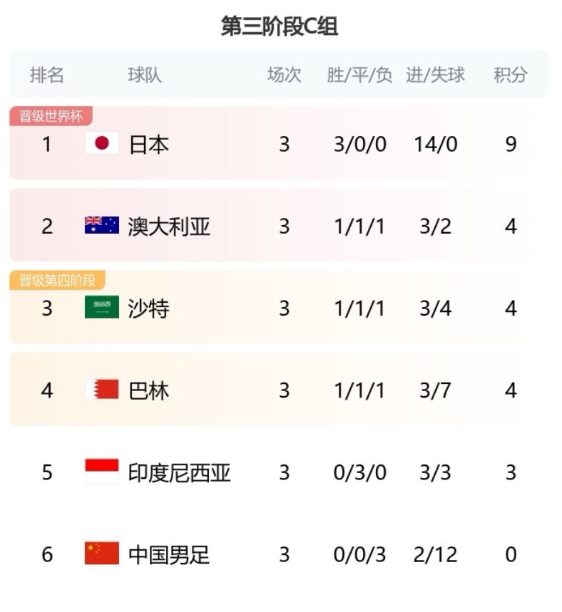 10月11日讯 世预赛亚洲区18强赛,第三轮过后C组只剩国足和印尼还未取胜。