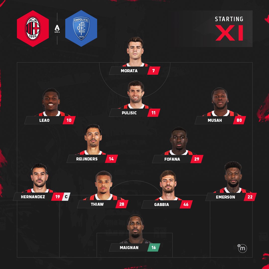 ⚡AC米兰vs恩波利:莫拉塔首发,普利西奇、莱奥出战